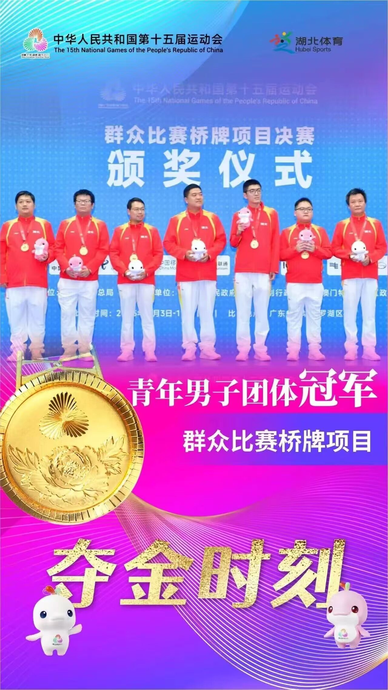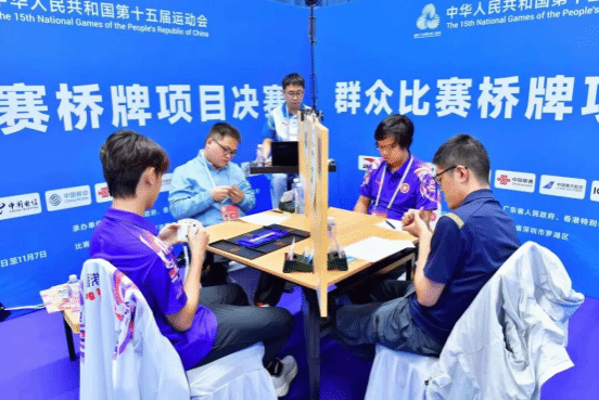 本网讯 近日,第十五届全国运动会群众比赛桥牌项目决赛在广东省深圳市罗湖区深圳棋院圆满落幕。我校2024届校友谭千亿作为湖北青年桥牌队成员,与队友携手奋战,最终以107.5比102的比分力克北京队,成功摘得金牌。
