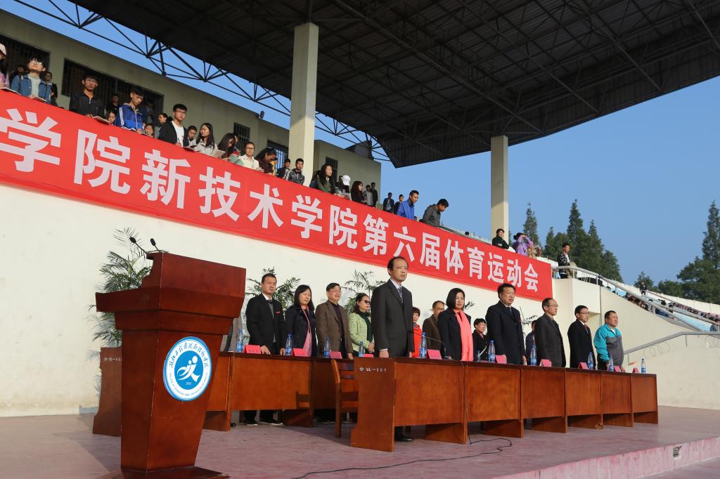 院长李明清宣布:湖北工程学院新技术学院第六届体育运动会开幕。