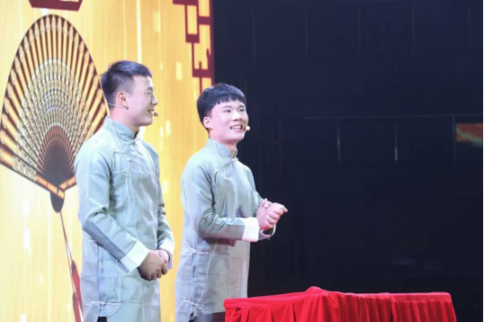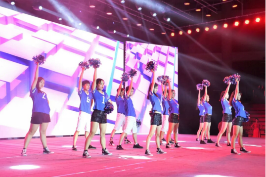 啦啦操《Runaway》舞者踏着音乐的节点向大家展现了整齐划一的舞步,尽显青春与热血的气息;“黄发垂髫,并怡然自乐”,这是很多人对古代恬静生活的向往,小品《我要穿越》带领着大家领略了穿越的魅力,幽默又不失严谨的语言充分的调动起会场的氛围;中国风齐舞《舞魂》巧妙的将街舞与武术融合,让优秀的传统文化与时代并进;训练、拉歌是军训生活的必修课,十多天的相处留下的不仅仅是脸庞流淌的汗水,更多的是美好的回忆,歌曲《我们俩》是陈教官送给大家的礼物,它承载着军训学生与教官彼此间的情谊。