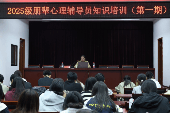 本网讯 为加强朋辈心理辅导队伍建设,提升学生心理互助专业能力。11月6日下午,我校在科技楼五楼报告厅举办2025级朋辈心理辅导员第一期知识培训。本次讲座由湖北工程学院教育与心理学院副教授郑应霞主讲,2025级各班心理委员、院系心理部成员及朋辈小组骨干等百余人参加。