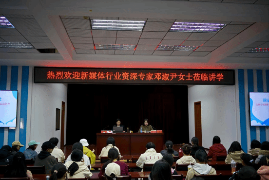 本网讯 为提升学生职业认知与专业实践能力,11月27日下午,我校在科技楼五楼报告厅举办“网络新媒体职场初阶”主题讲座,特邀行业资深专家邓淑尹女士主讲。人文传播系主任仰姝主持活动,网络与新媒体、广告学及汉语言文学专业师生代表参与聆听。