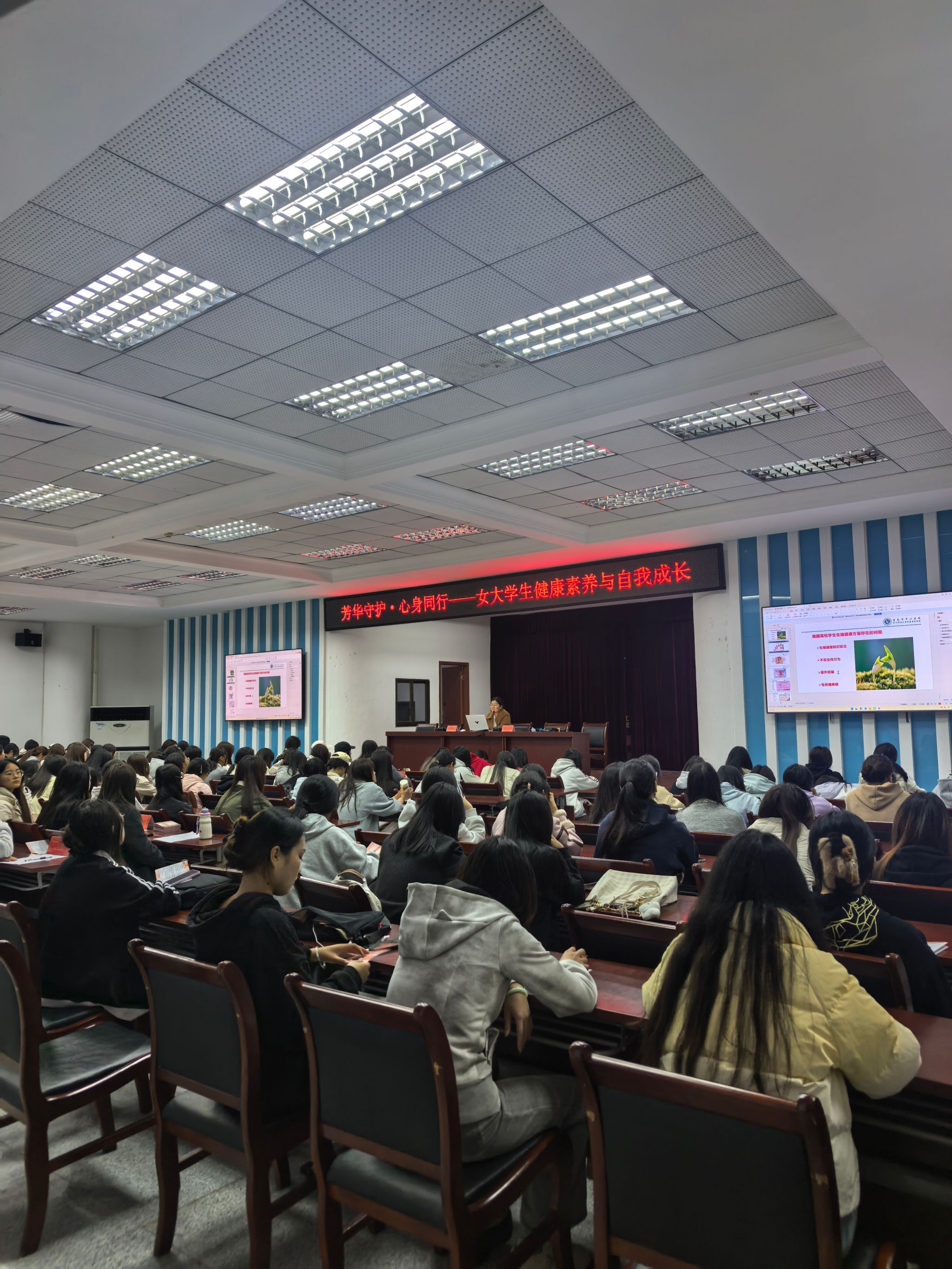 整场讲座深入浅出,既有理论深度,又贴近校园生活。现场秩序井然,同学们认真聆听、积极互动。学校还向参会学生发放了《女生健康知识手册》,便于课后巩固学习。