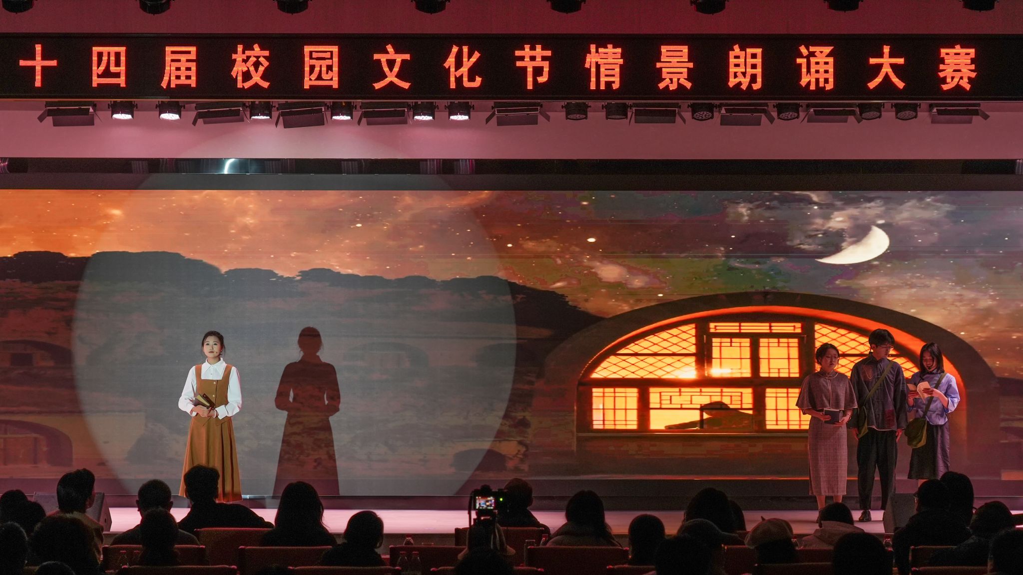 本网讯 为纪念中国人民抗日战争暨世界反法西斯战争胜利80周年,深入推进沉浸式思政教育实践,12月4日,我校第十四届校园文化节“品读峥嵘岁月 激扬青春新声”情景朗诵大赛在美术楼报告厅举行。